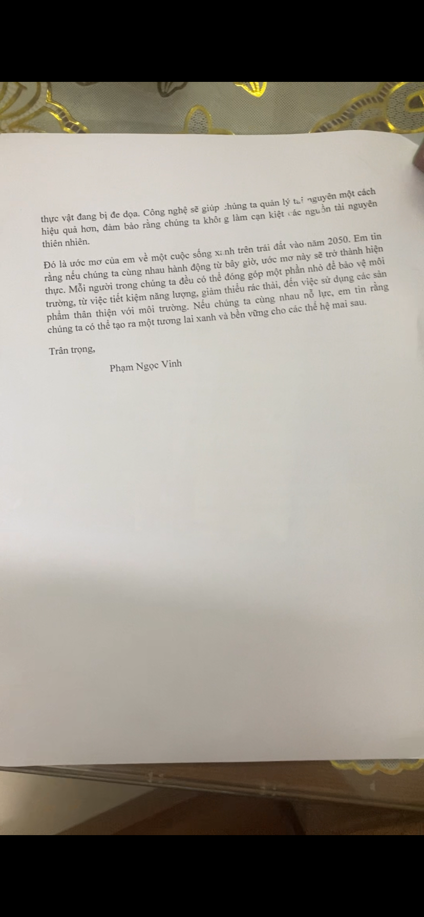 Chia sẻ uớc mơ liên quan đến năng lượng xanh, giáo dục xanh, lối sống xanh về cuộc sống xanh trên Trái đất vào năm 2050.