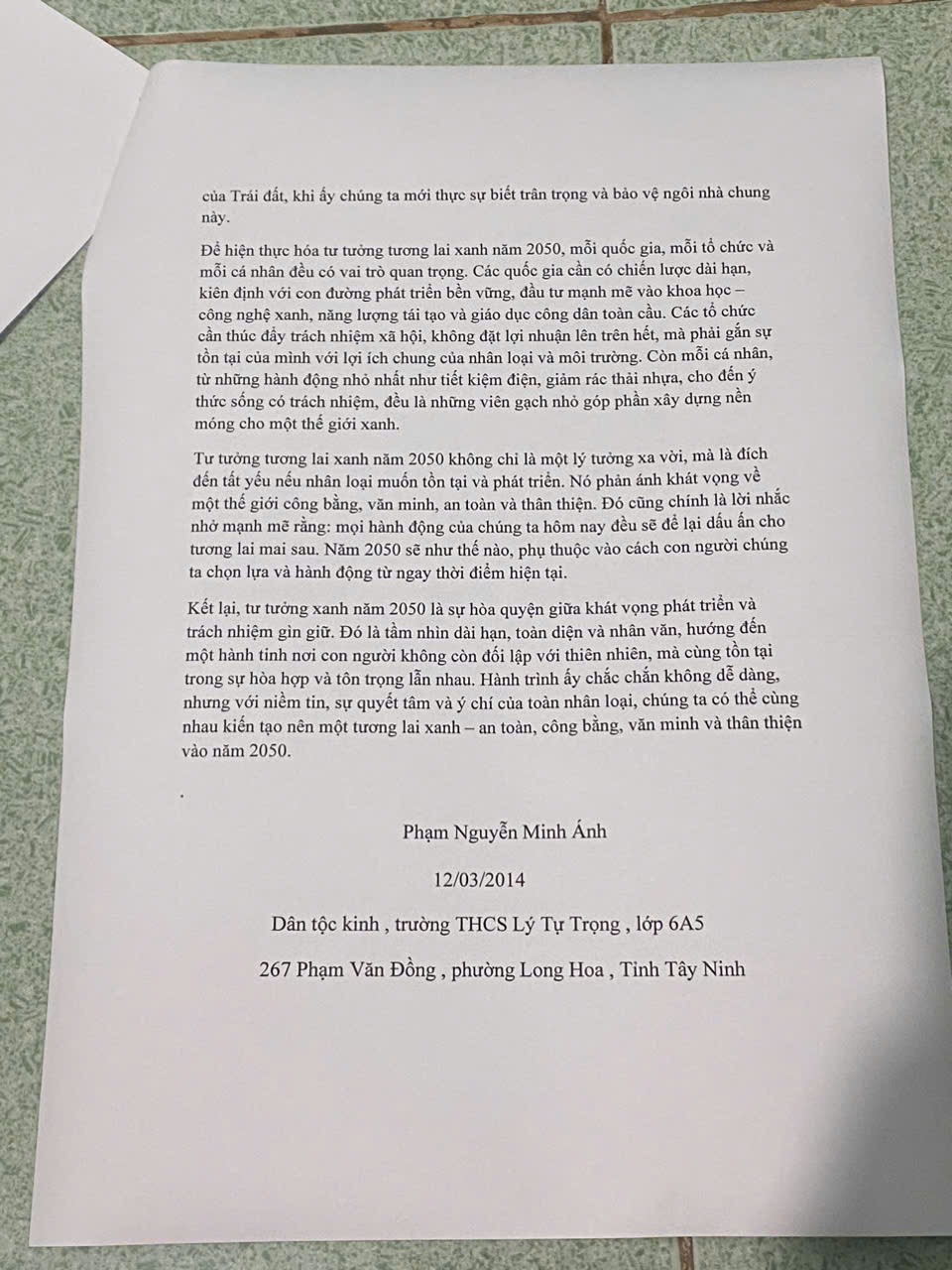 Chia sẻ uớc mơ liên quan đến năng lượng xanh, giáo dục xanh, lối sống xanh về cuộc sống xanh trên Trái đất vào năm 2050.