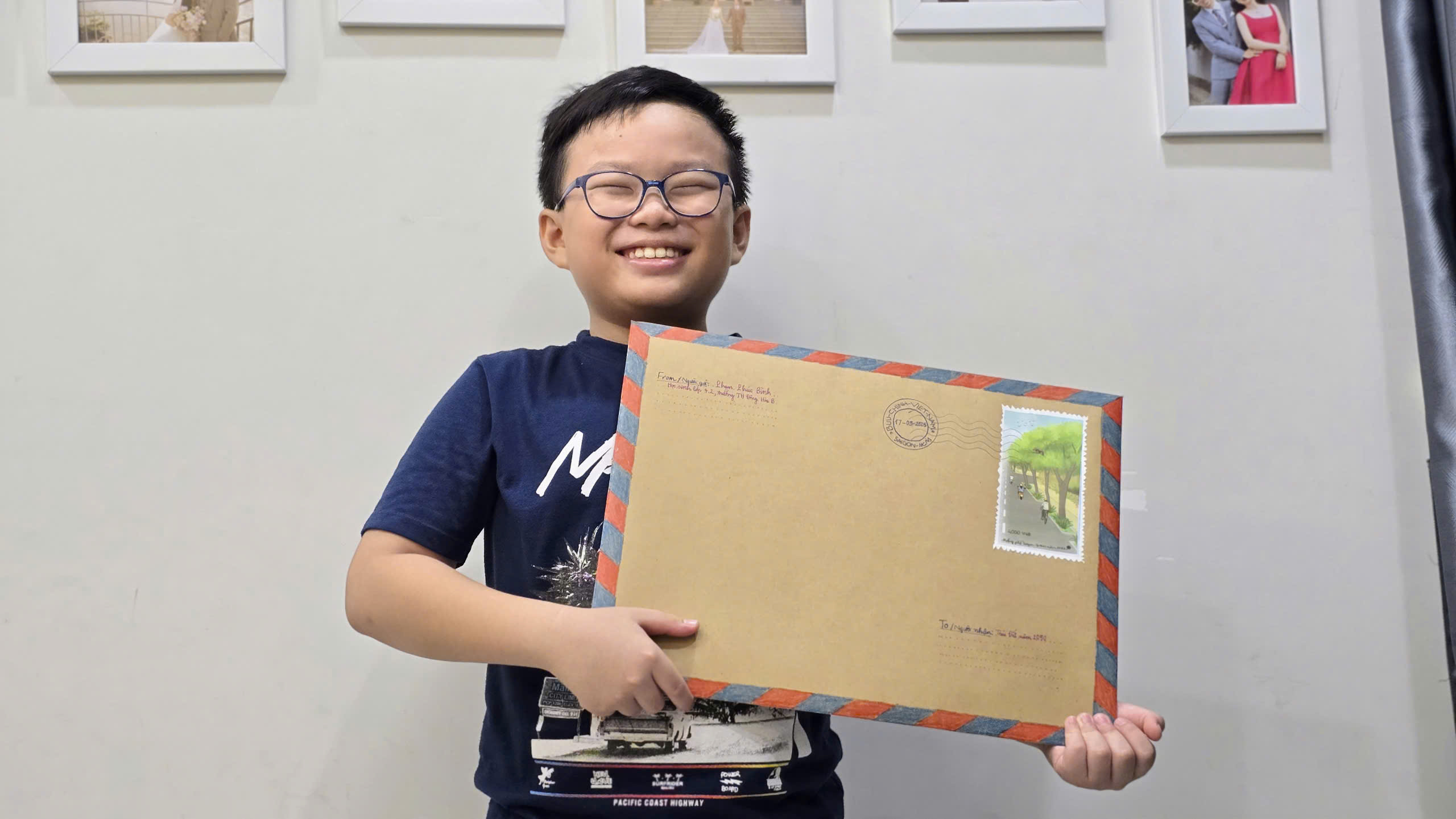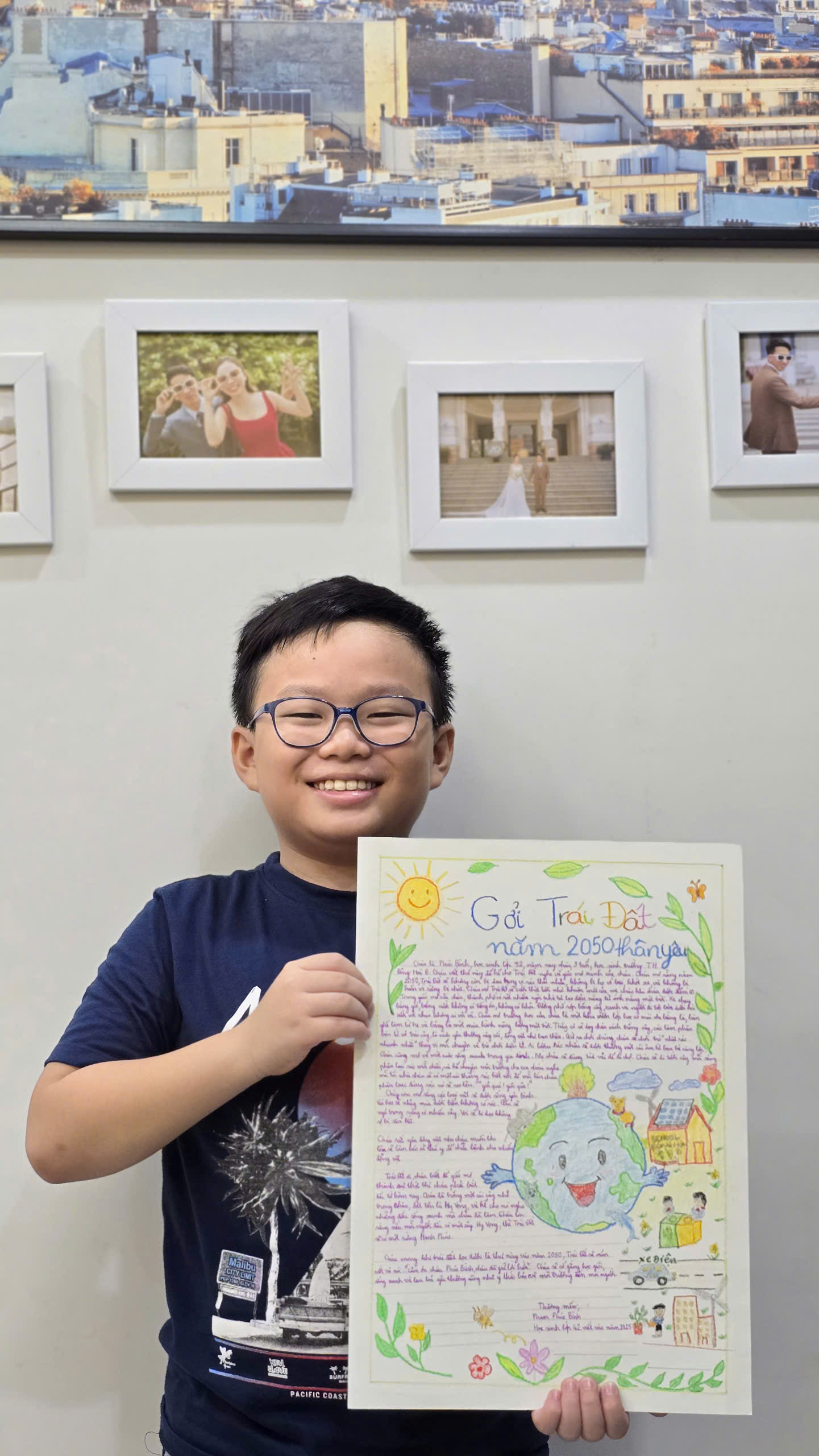 Em là Phúc Bình, học sinh lớp 4.2 trường tiểu học Đông Hòa B. Lá thư “Gửi Trái Đất năm 2050 thân yêu” là một điều đặc biệt mà em đã ấp ủ từ lâu.