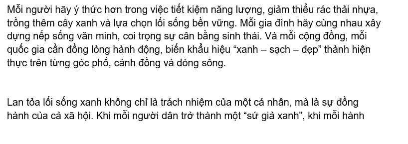 Chia sẻ uớc mơ liên quan đến năng lượng xanh, giáo dục xanh, lối sống xanh về cuộc sống xanh trên Trái đất vào năm 2050.
