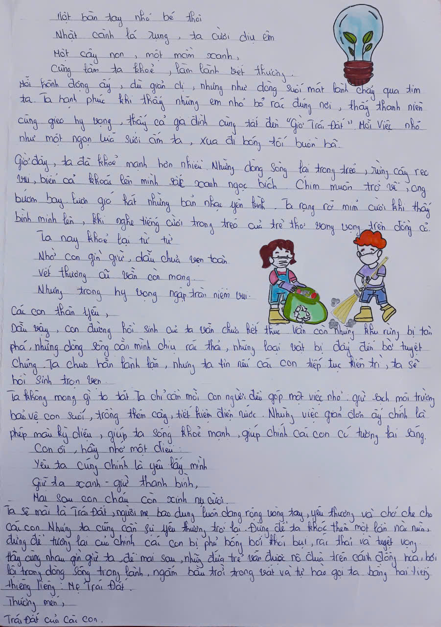 Chia sẻ uớc mơ liên quan đến năng lượng xanh, giáo dục xanh, lối sống xanh về cuộc sống xanh trên Trái đất vào năm 2050.