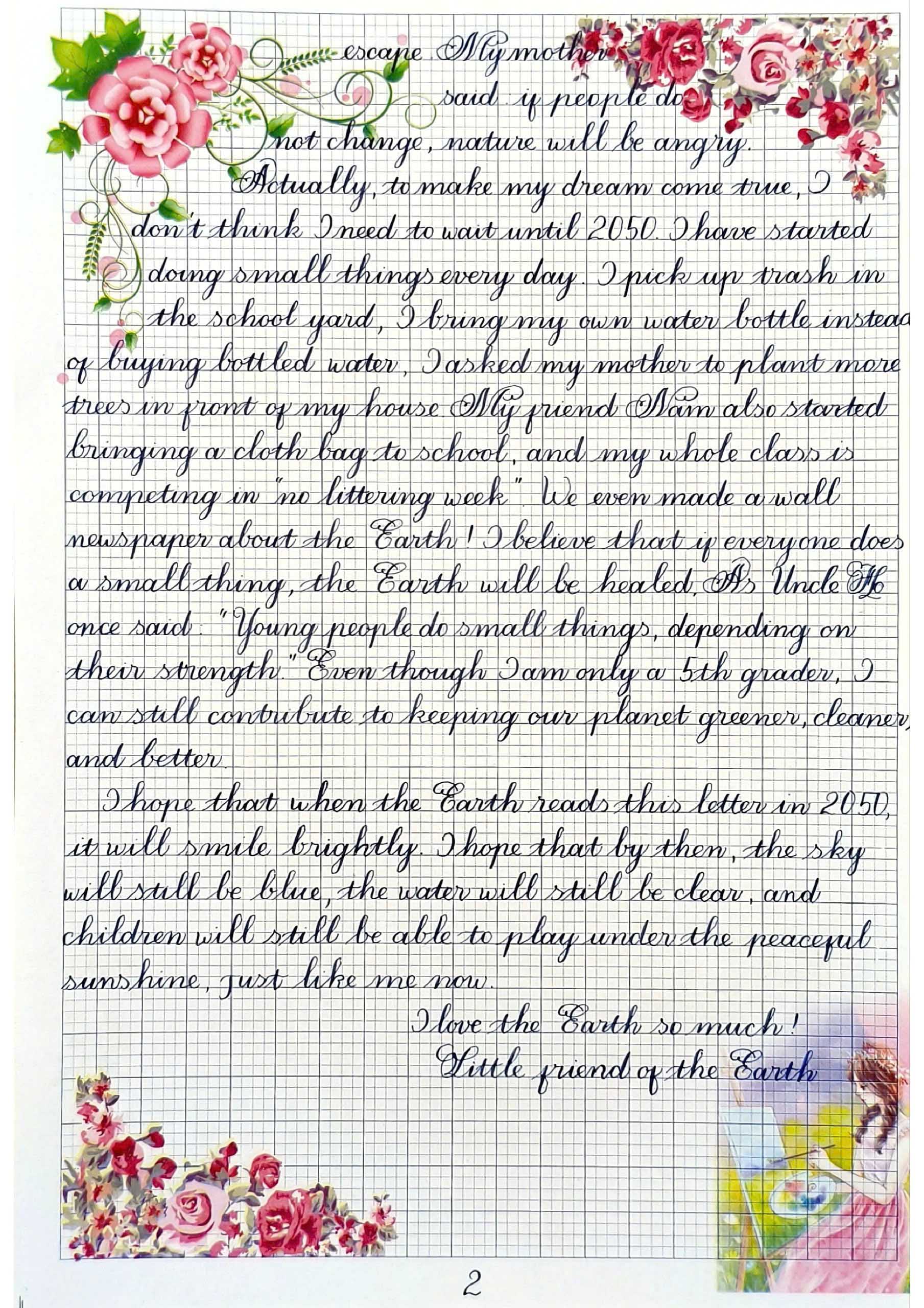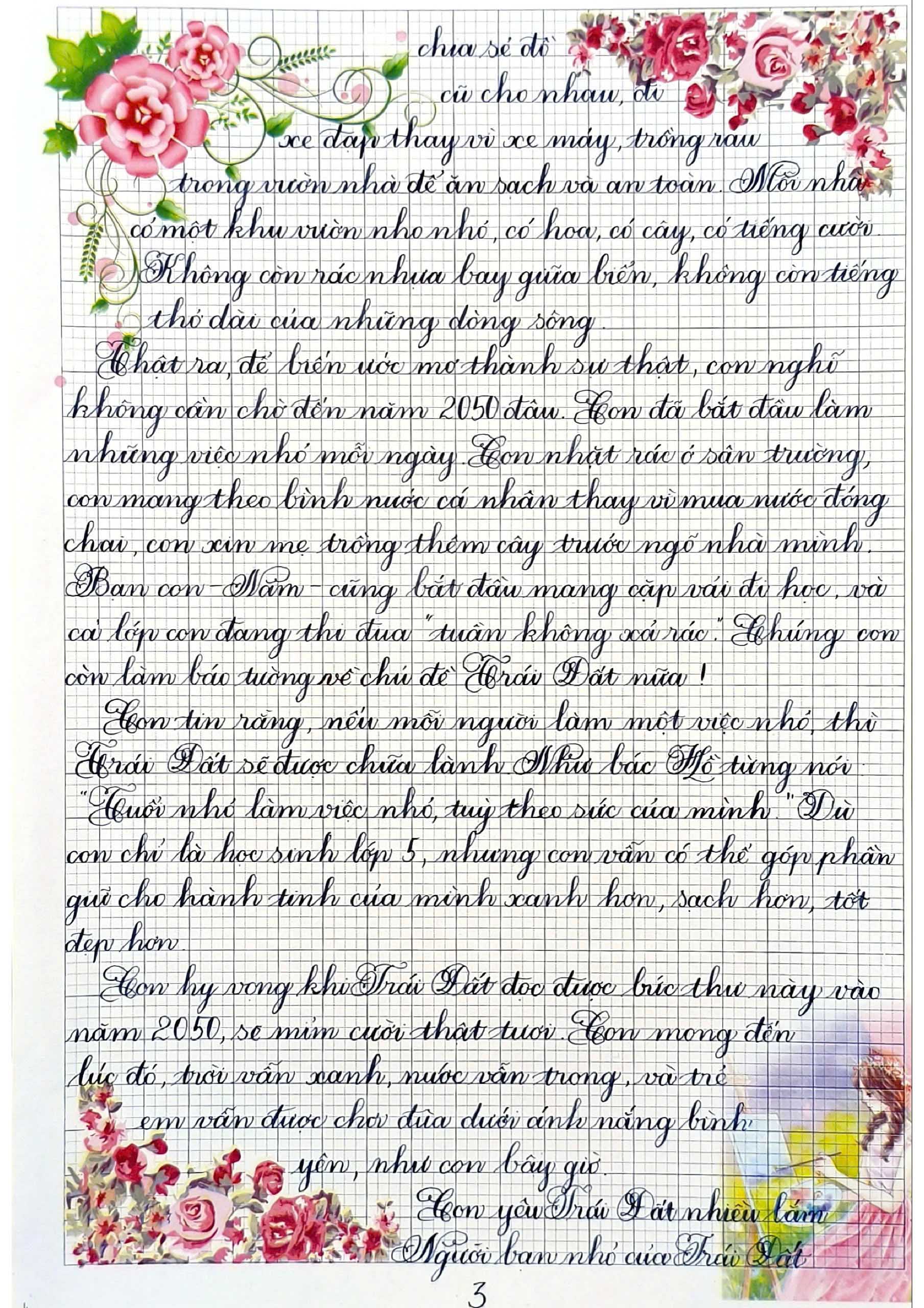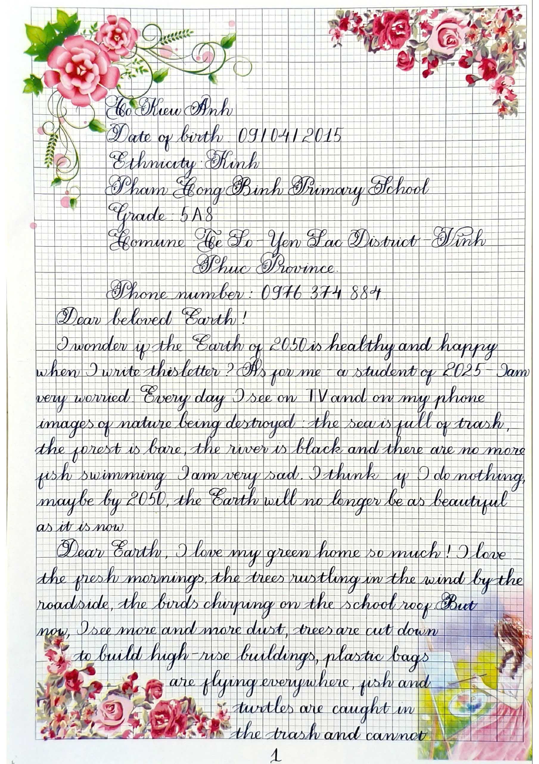 Mình vừa hoàn thành bức thư gửi đến Trái Đất năm 2050 – một lời nhắn nhủ đầy hy vọng và lo lắng về môi trường.
