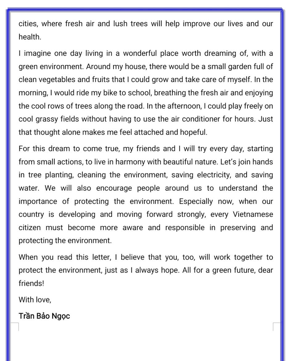 Chia sẻ uớc mơ liên quan đến năng lượng xanh, giáo dục xanh, lối sống xanh về cuộc sống xanh trên Trái đất vào năm 2050.
