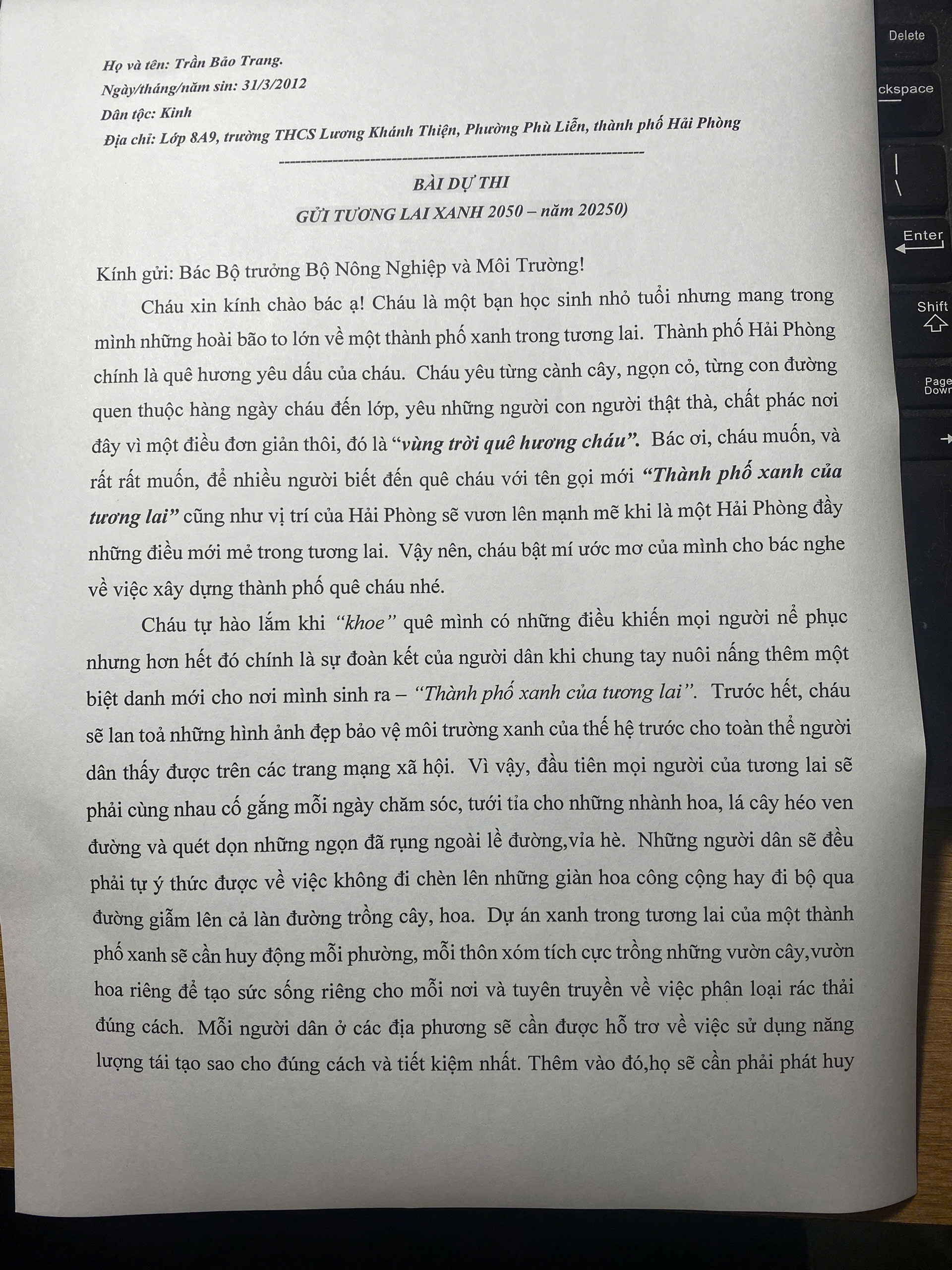 Chia sẻ uớc mơ liên quan đến năng lượng xanh, giáo dục xanh, lối sống xanh về cuộc sống xanh trên Trái đất vào năm 2050.