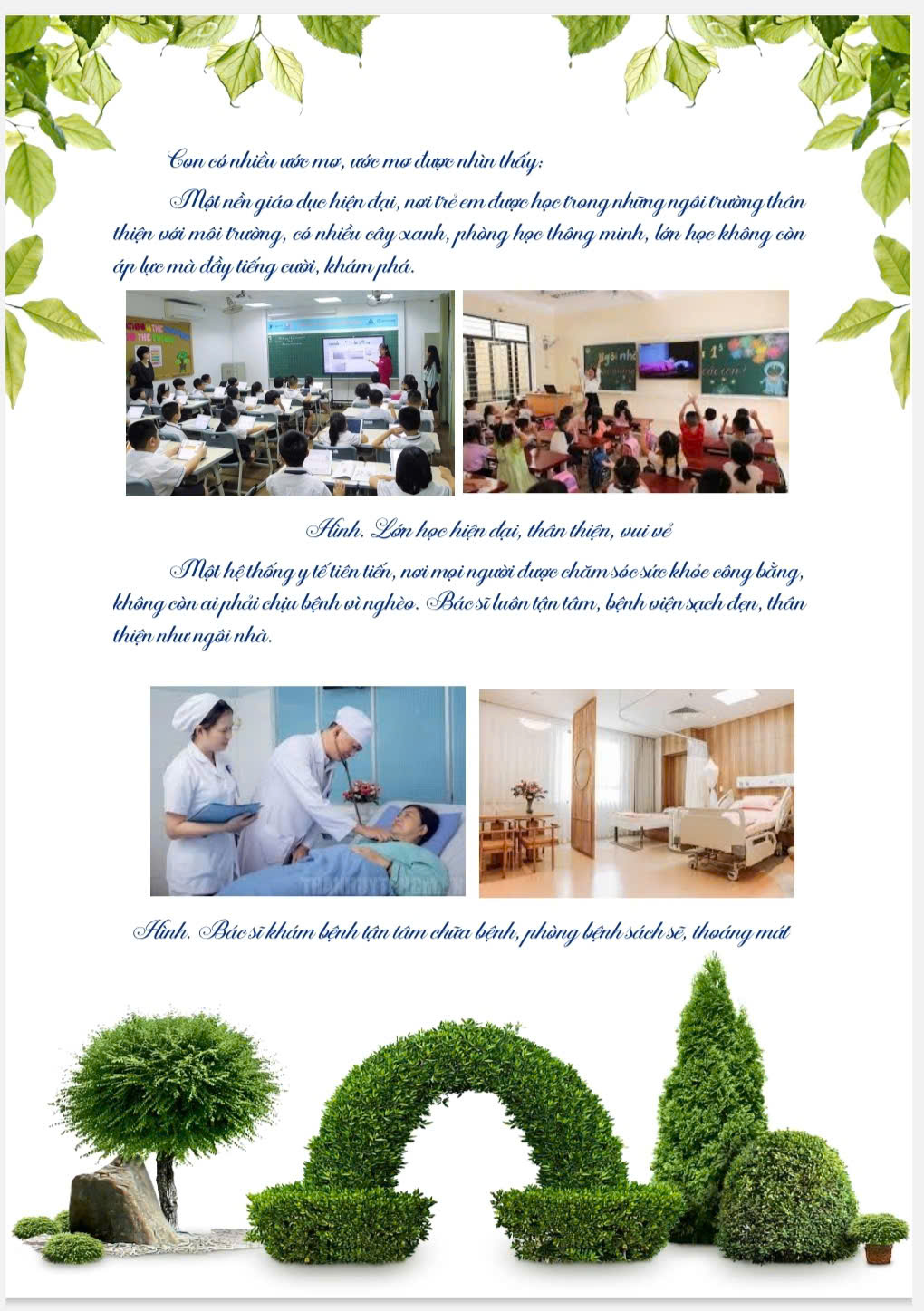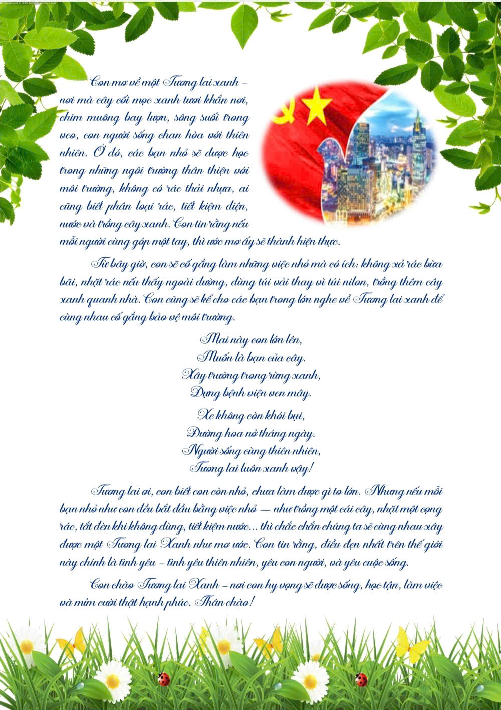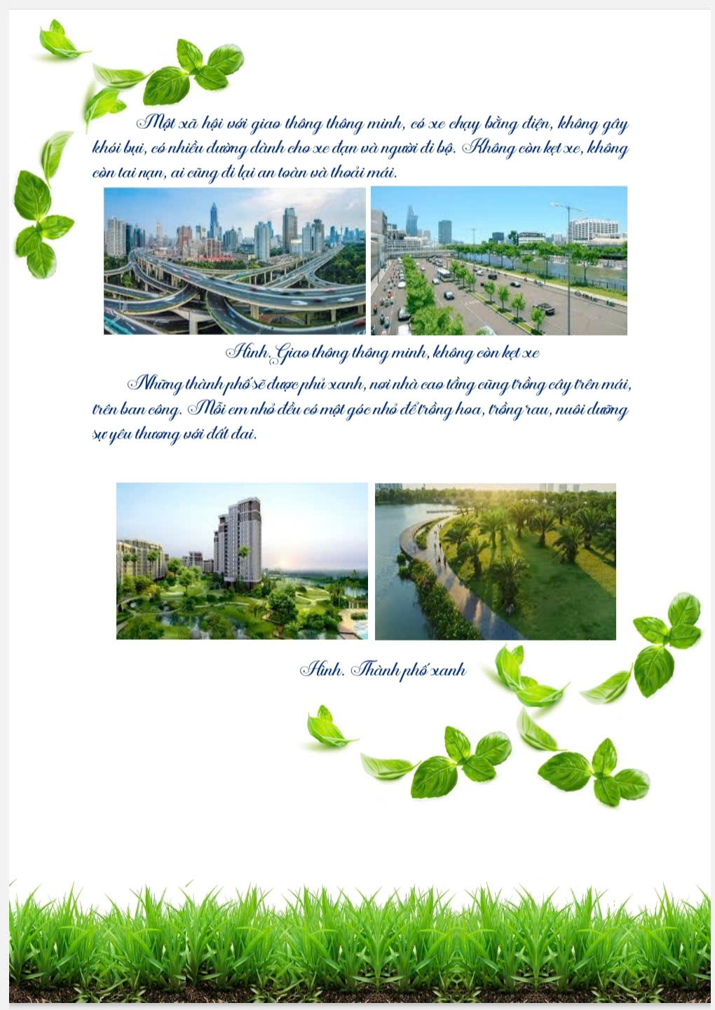 Chia sẻ uớc mơ liên quan đến năng lượng xanh, giáo dục xanh, lối sống xanh về cuộc sống xanh trên Trái đất vào năm 2050.