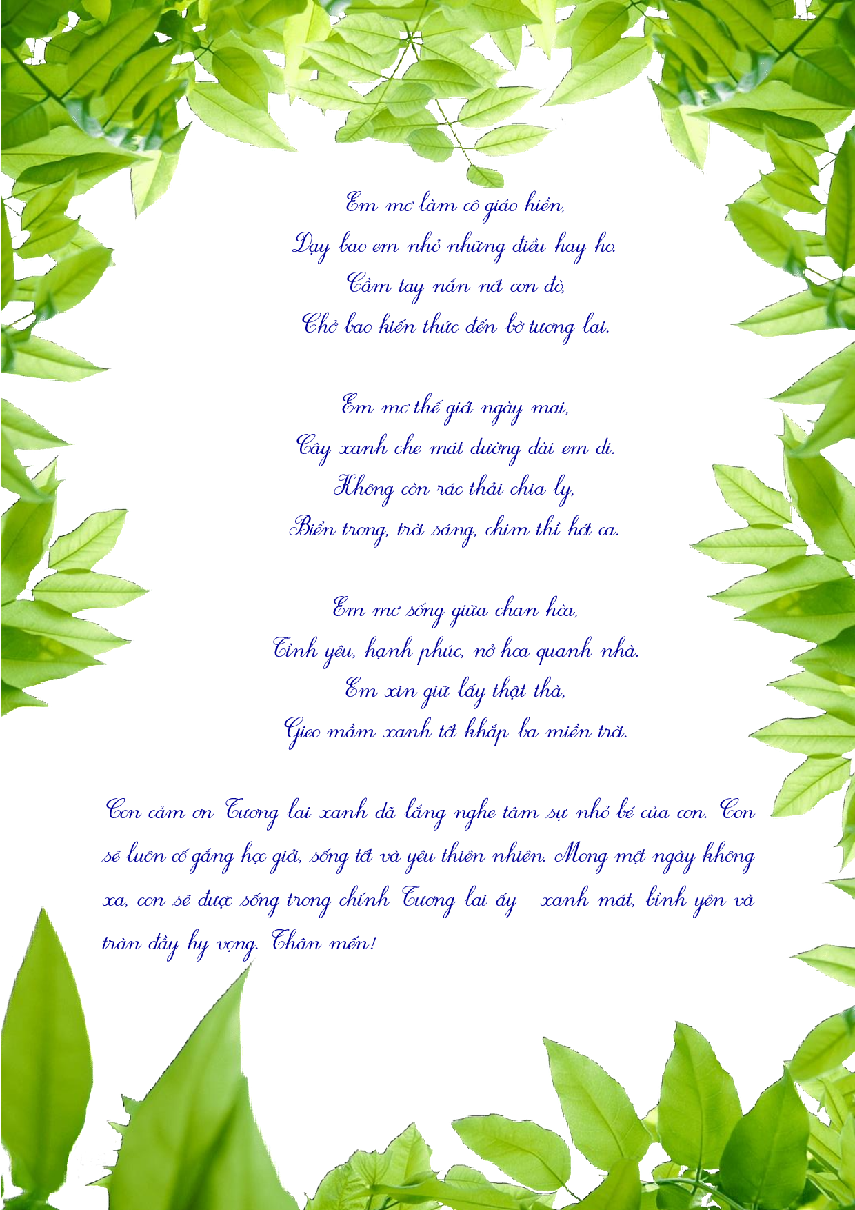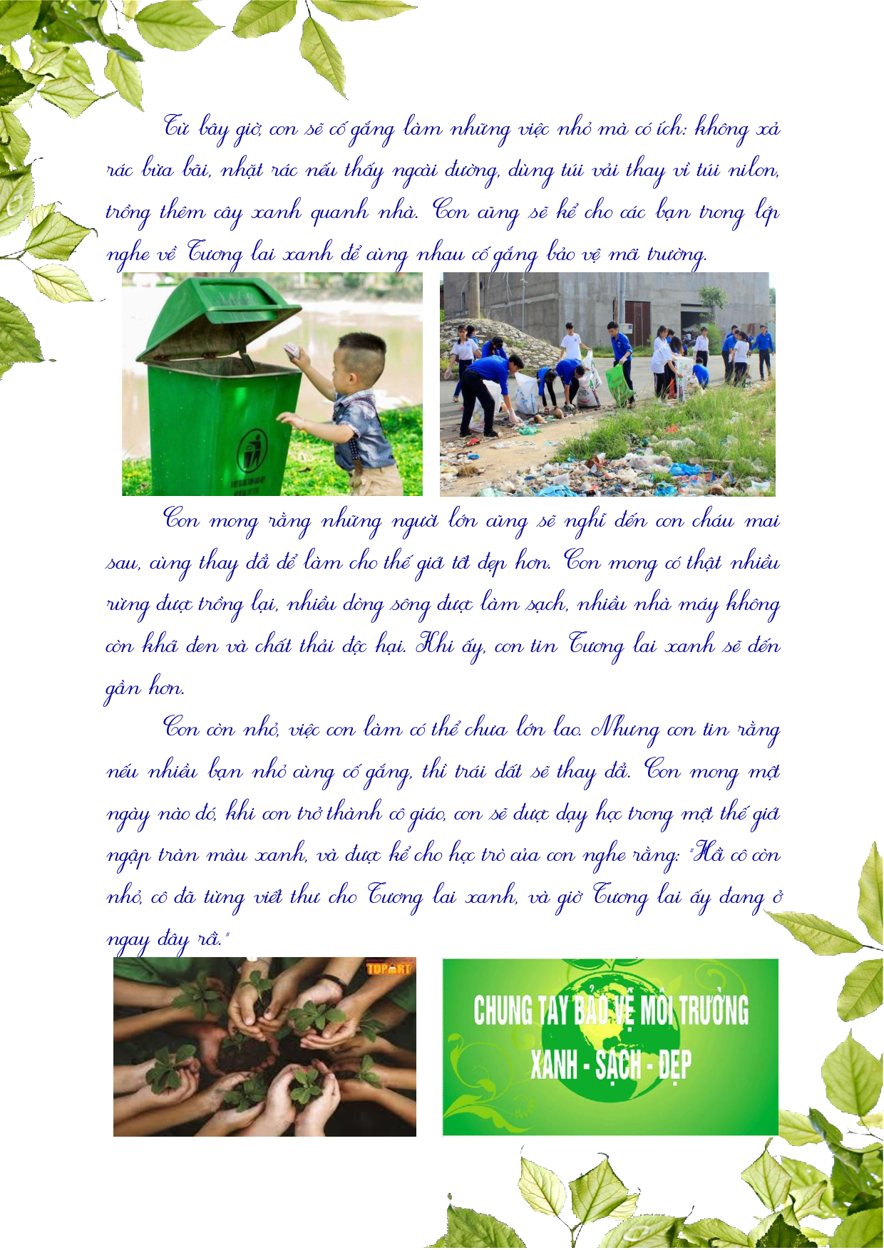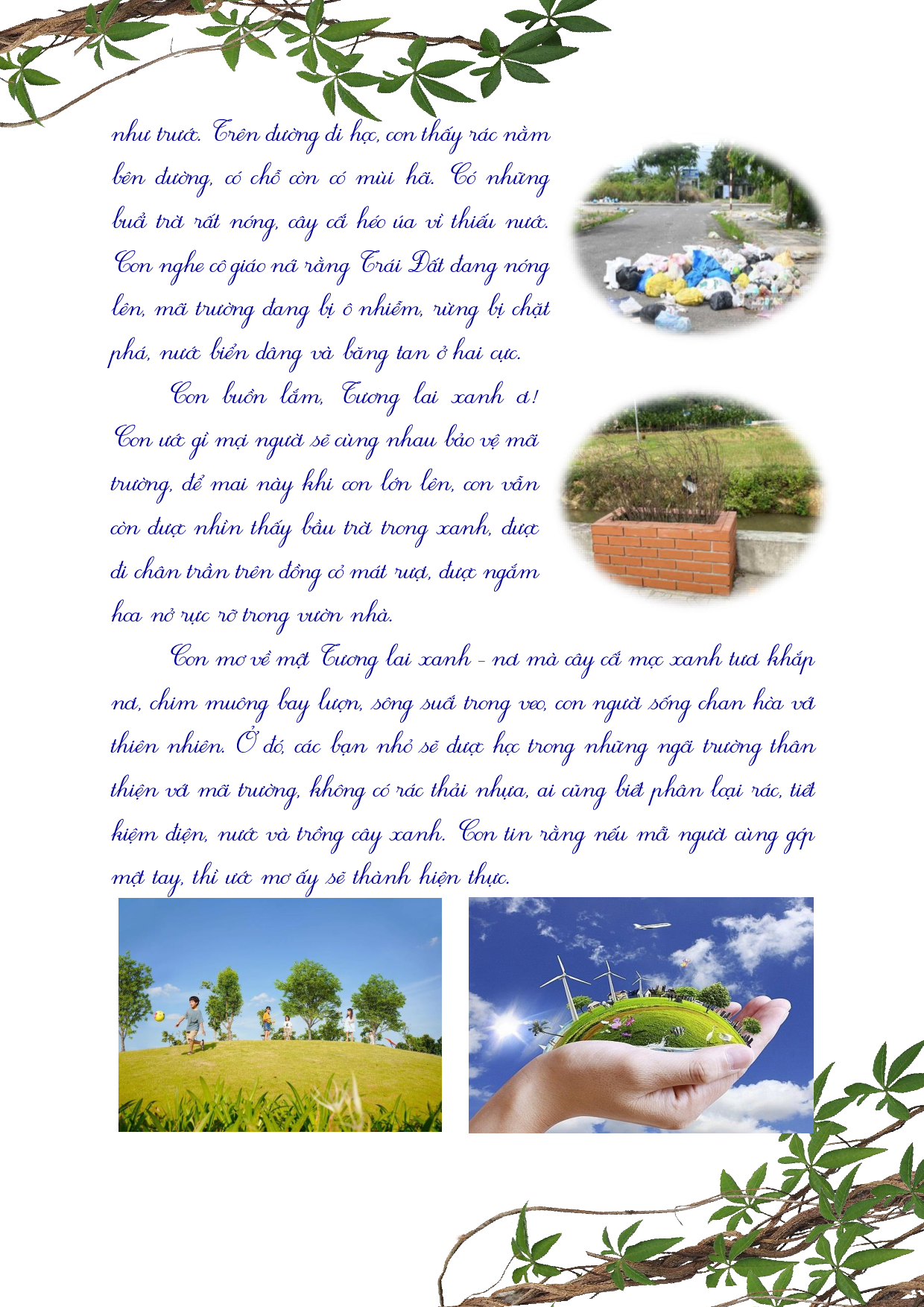 Chia sẻ uớc mơ liên quan đến năng lượng xanh, giáo dục xanh, lối sống xanh về cuộc sống xanh trên Trái đất vào năm 2050.