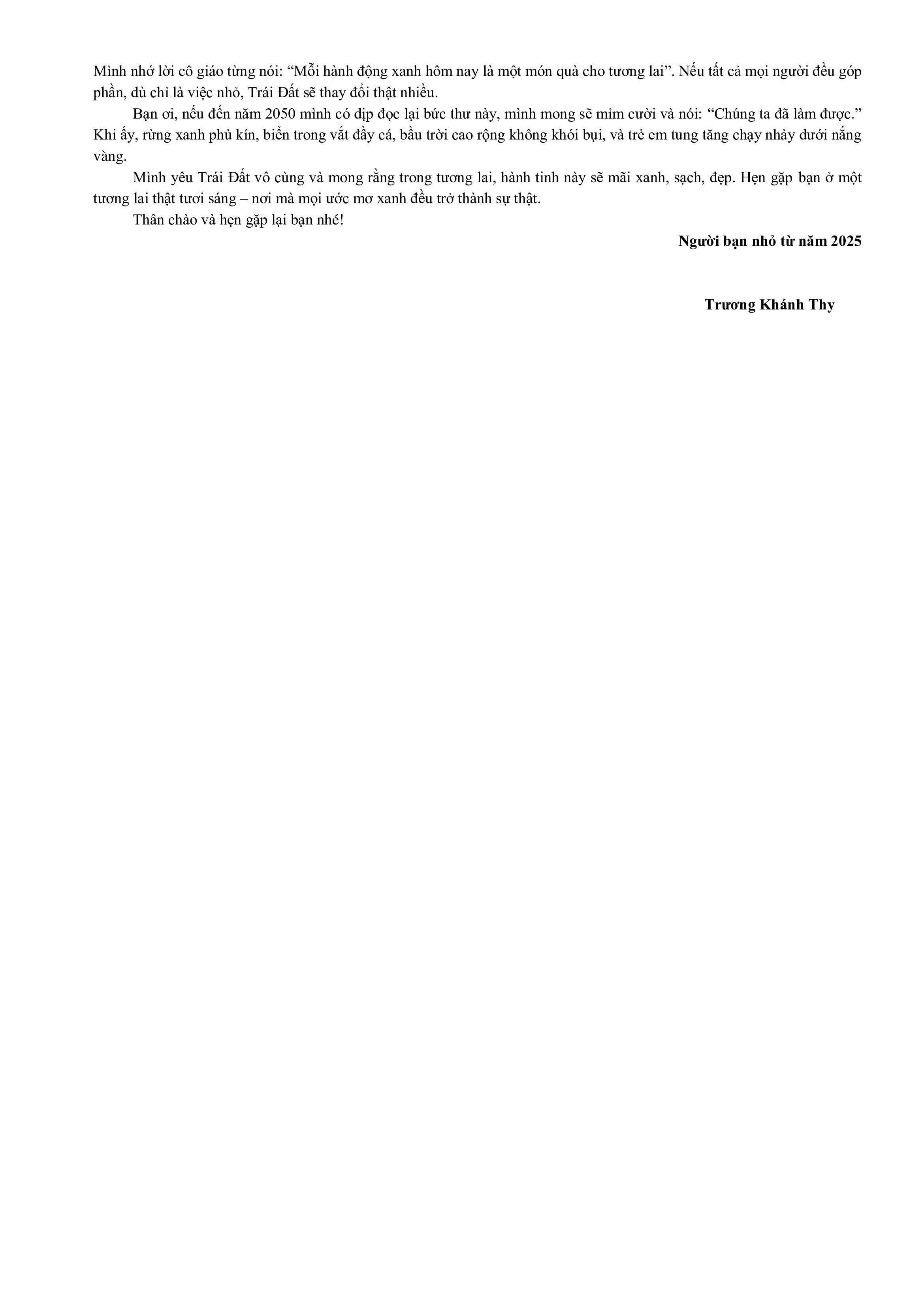 Chia sẻ uớc mơ liên quan đến năng lượng xanh, giáo dục xanh, lối sống xanh về cuộc sống xanh trên Trái đất vào năm 2050.