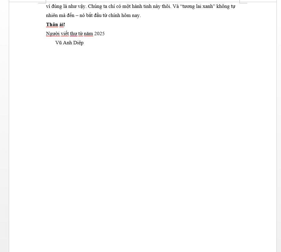 Chia sẻ uớc mơ liên quan đến năng lượng xanh, giáo dục xanh, lối sống xanh về cuộc sống xanh trên Trái đất vào năm 2050.