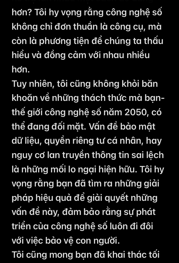 Chia sẻ uớc mơ liên quan đến năng lượng xanh, giáo dục xanh, lối sống xanh về cuộc sống xanh trên Trái đất vào năm 2050.