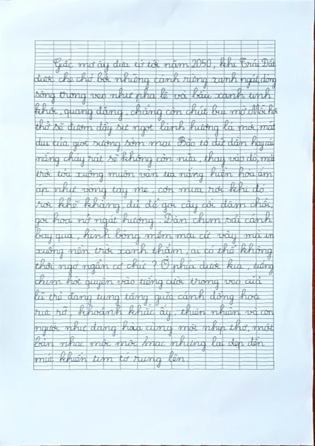Chia sẻ uớc mơ liên quan đến năng lượng xanh, giáo dục xanh, lối sống xanh về cuộc sống xanh trên Trái đất vào năm 2050.