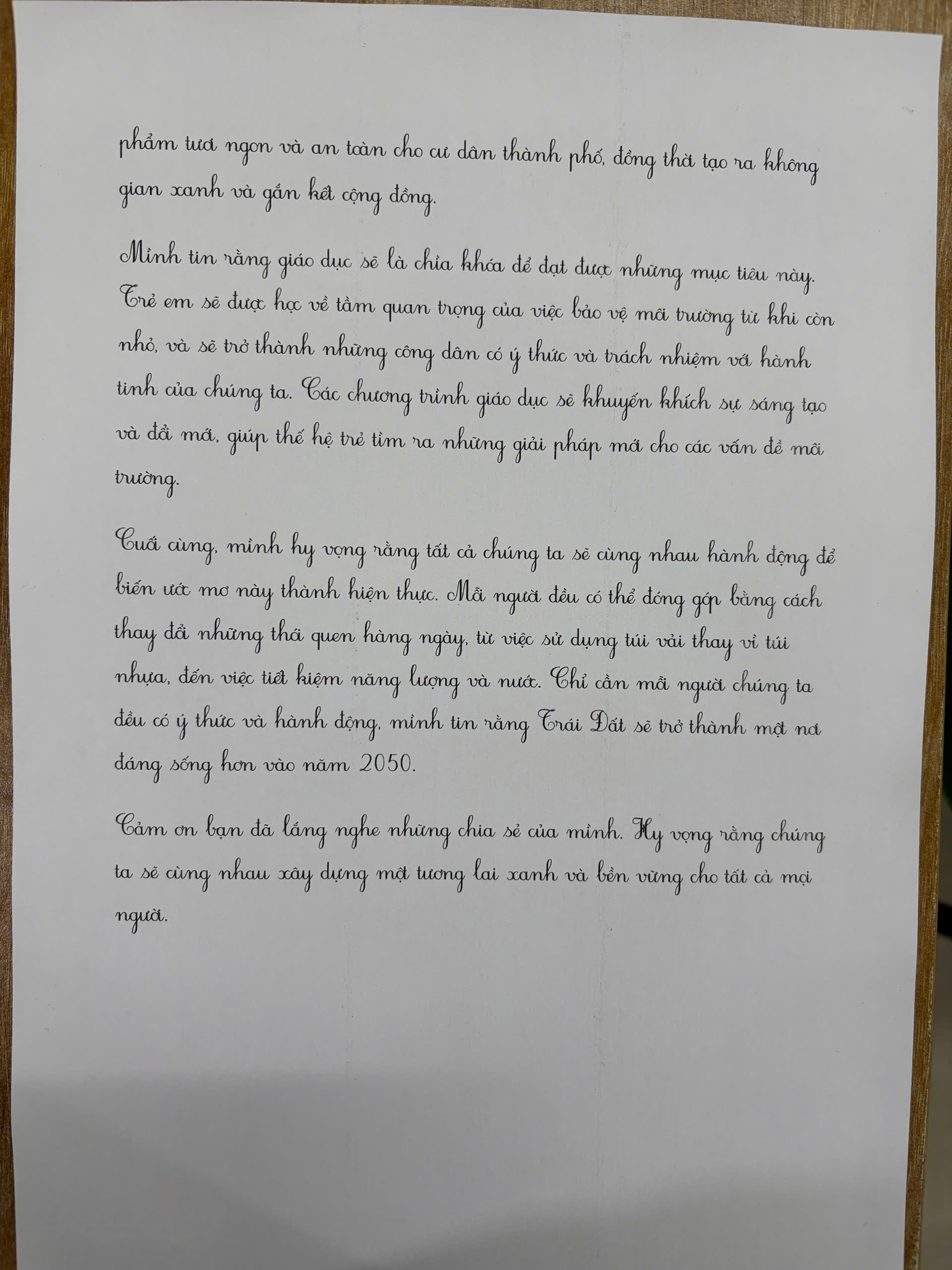 Chia sẻ uớc mơ liên quan đến năng lượng xanh, giáo dục xanh, lối sống xanh về cuộc sống xanh trên Trái đất vào năm 2050.